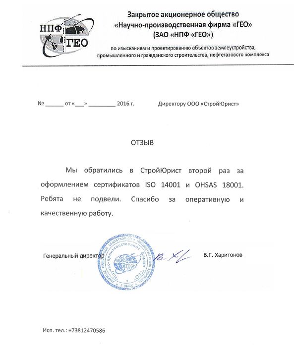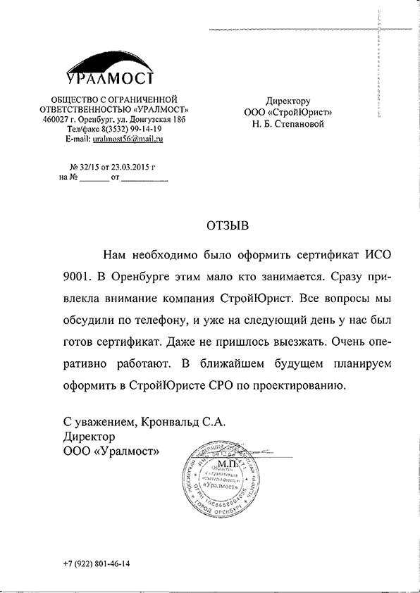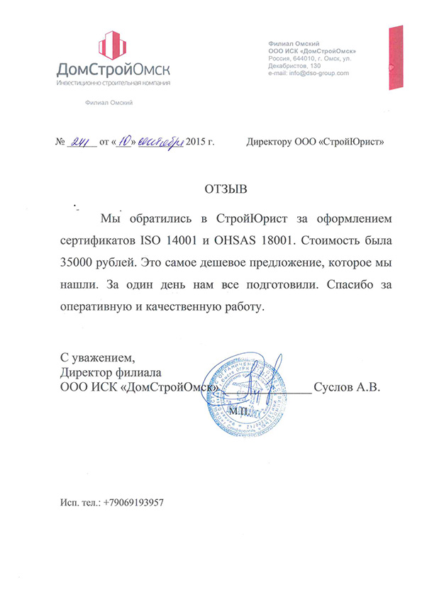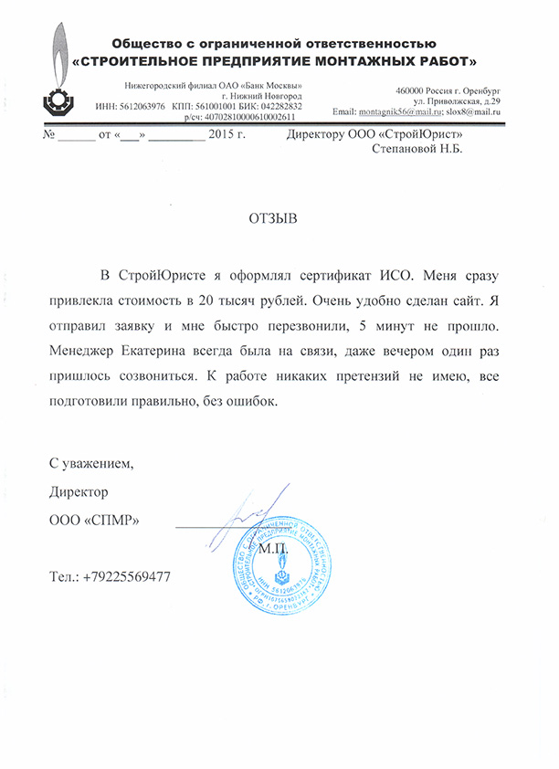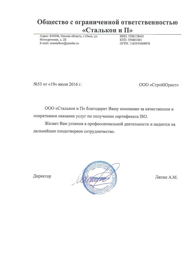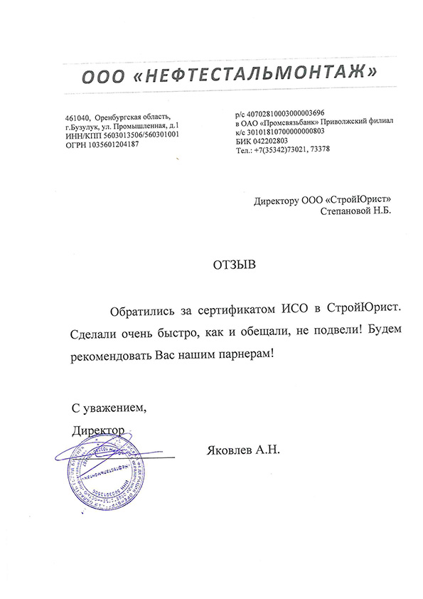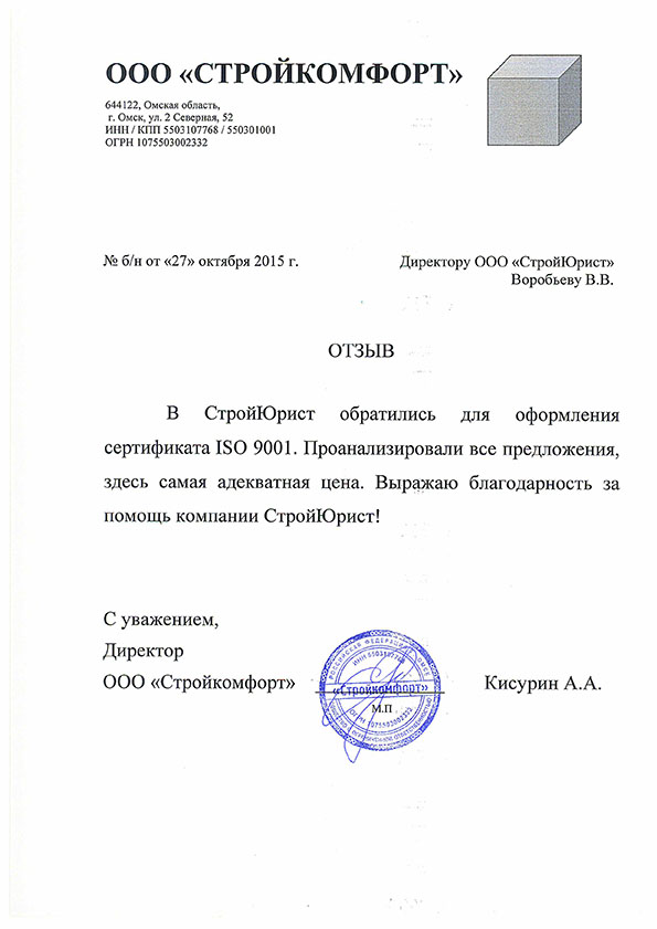 Отзывы клиентов "СтройЮрист" по ISO в Рыбинске