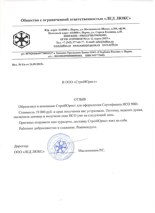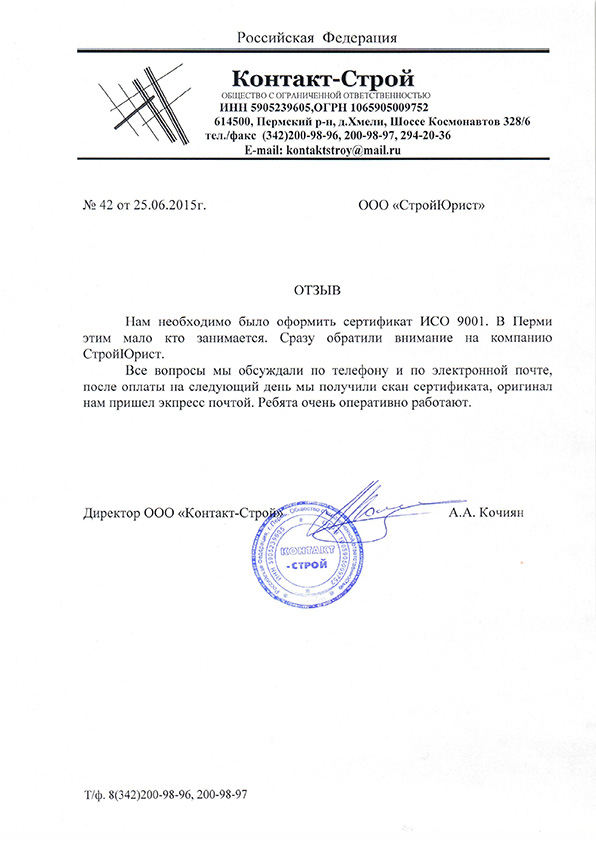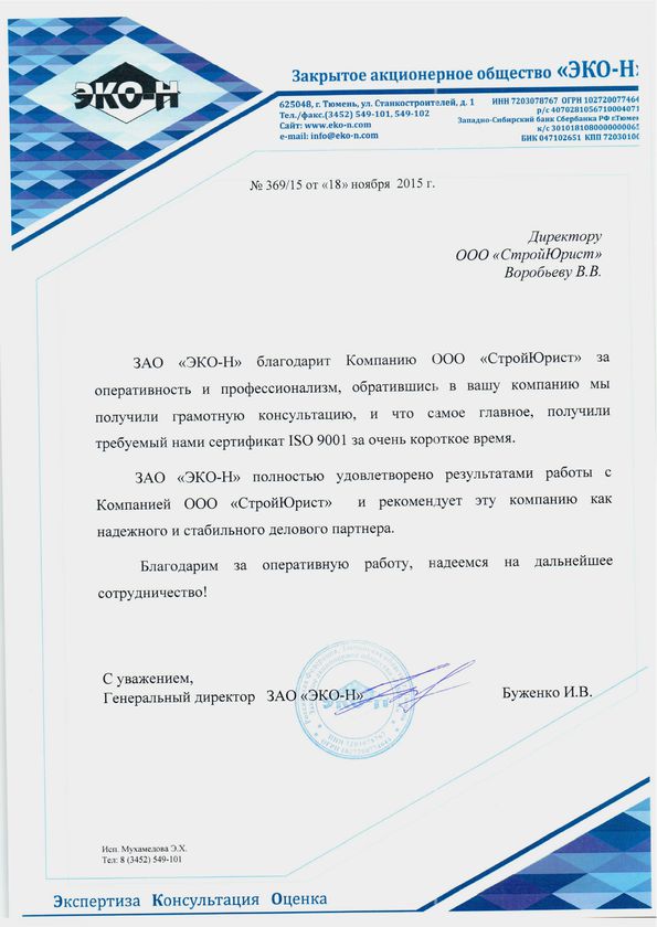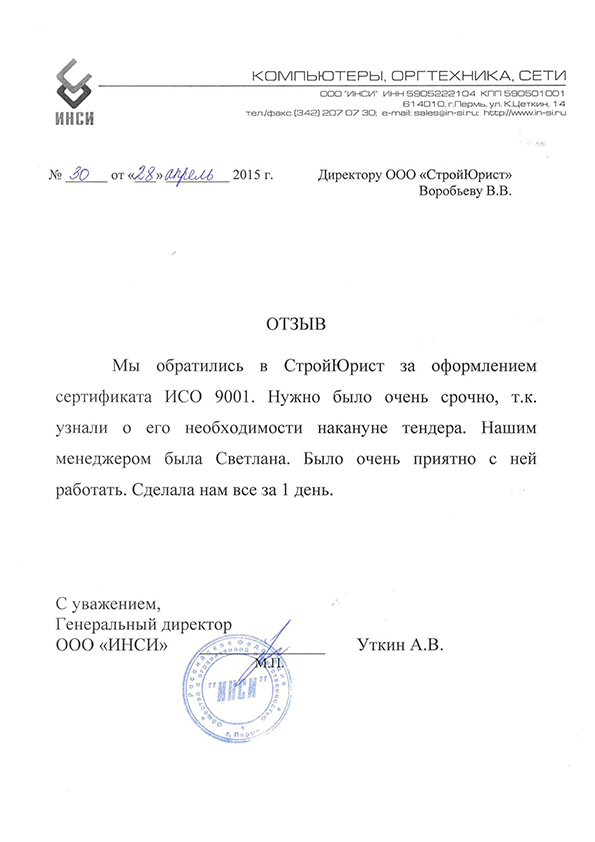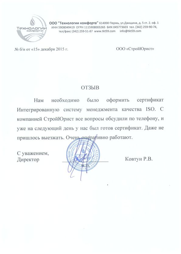 Отзывы клиентов "СтройЮрист" по ISO в Рыбинске