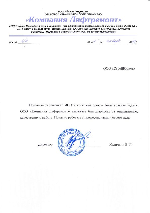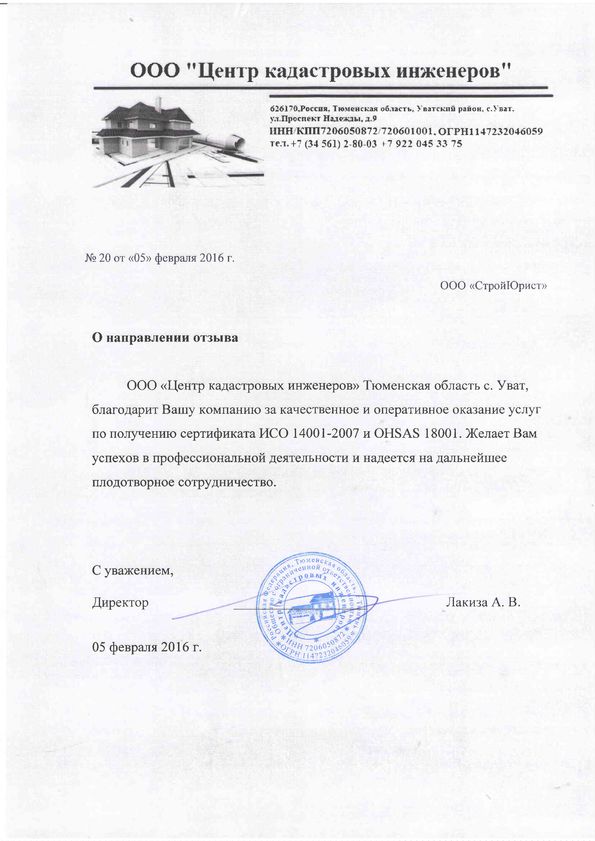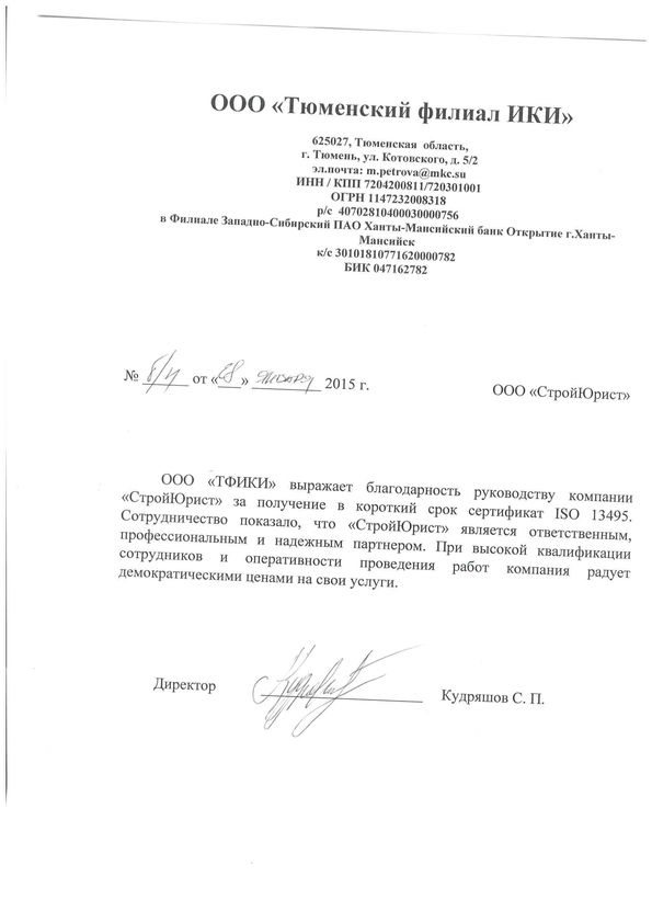 Отзывы клиентов "СтройЮрист" по ISO в Рыбинске