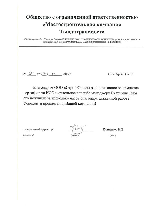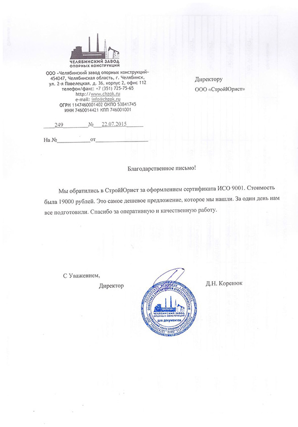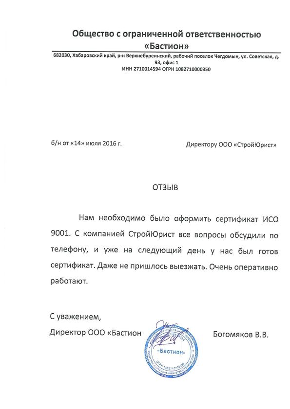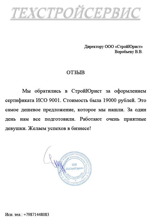 Отзывы клиентов "СтройЮрист" по ISO в Рыбинске