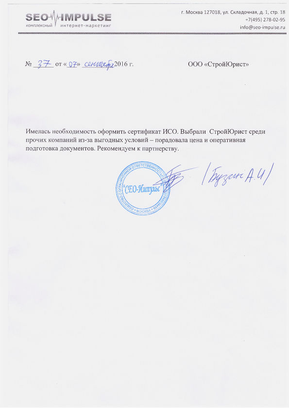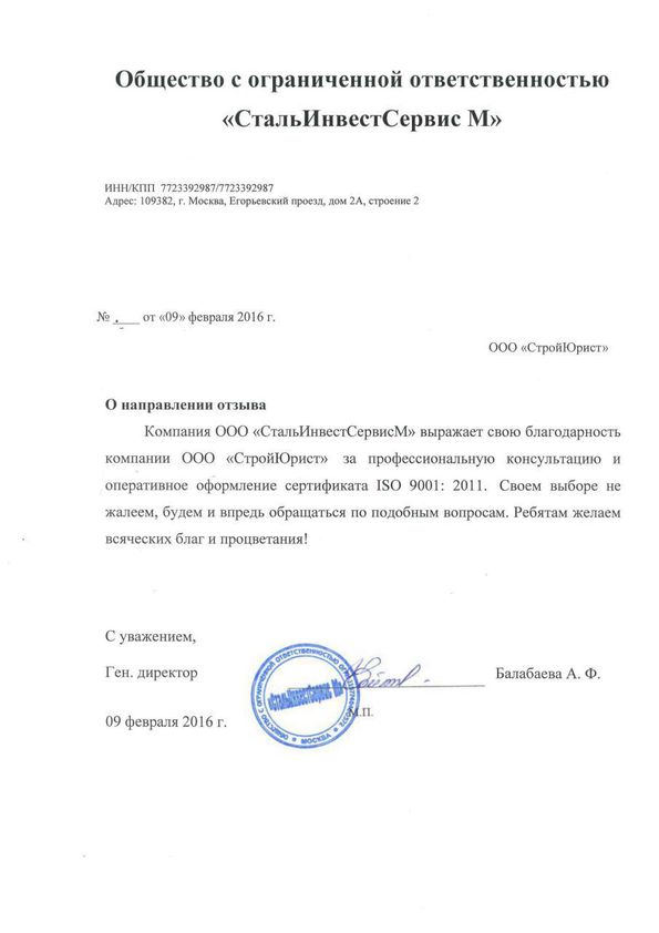 Отзывы клиентов "СтройЮрист" по ISO в Рыбинске
