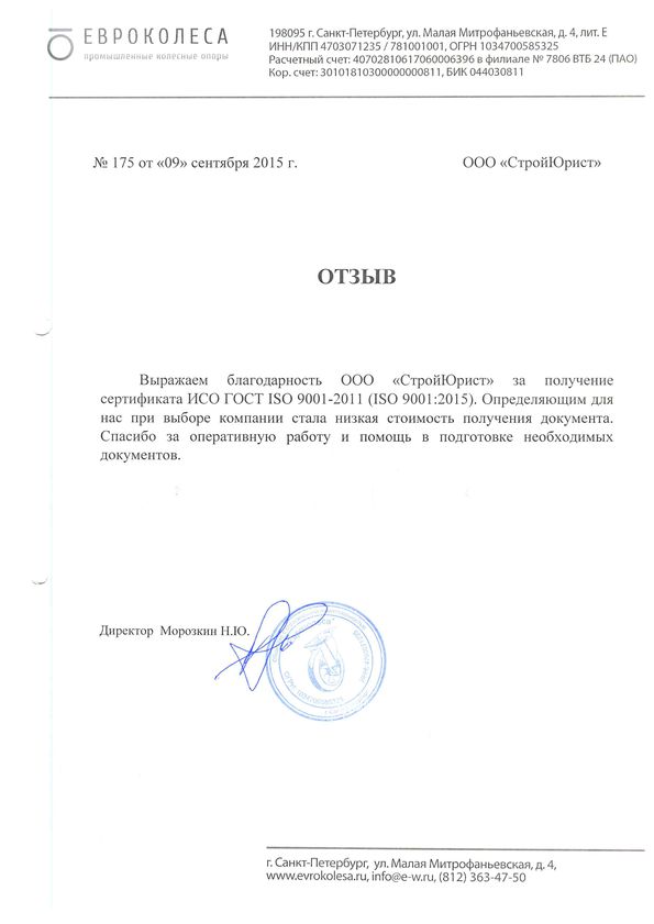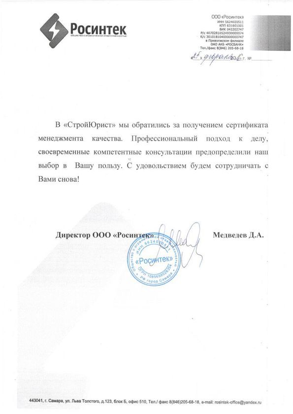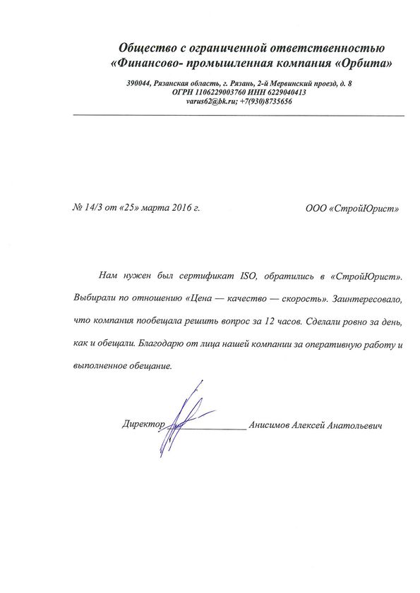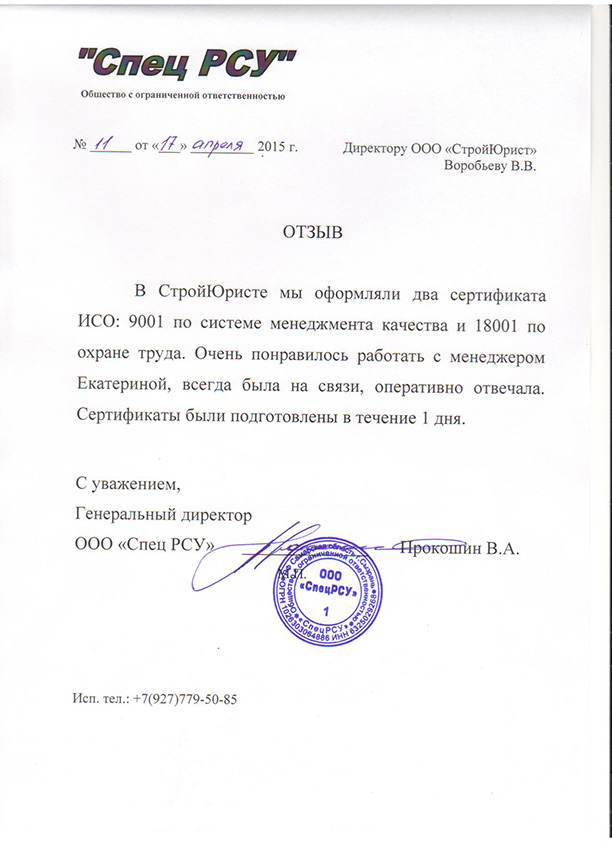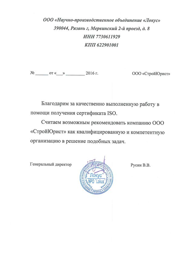 Отзывы клиентов "СтройЮрист" по ISO в Рыбинске