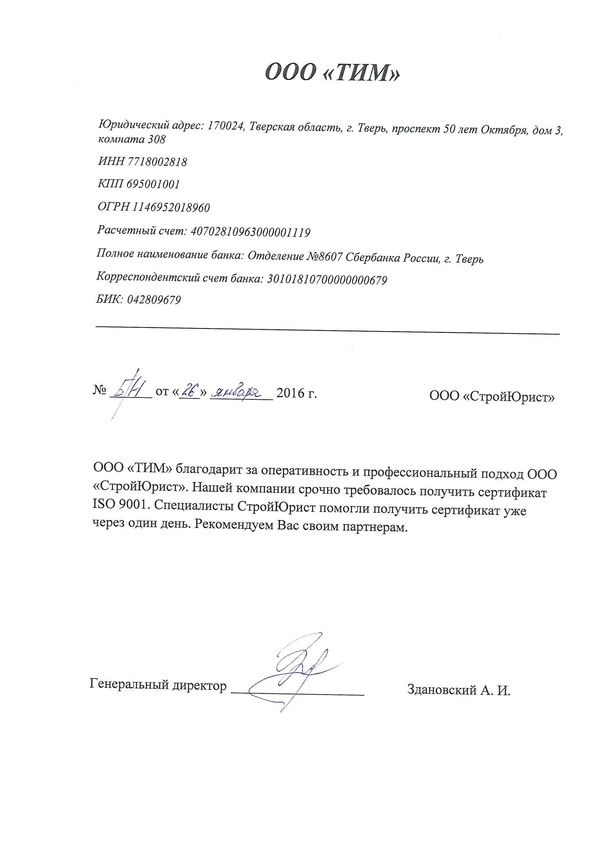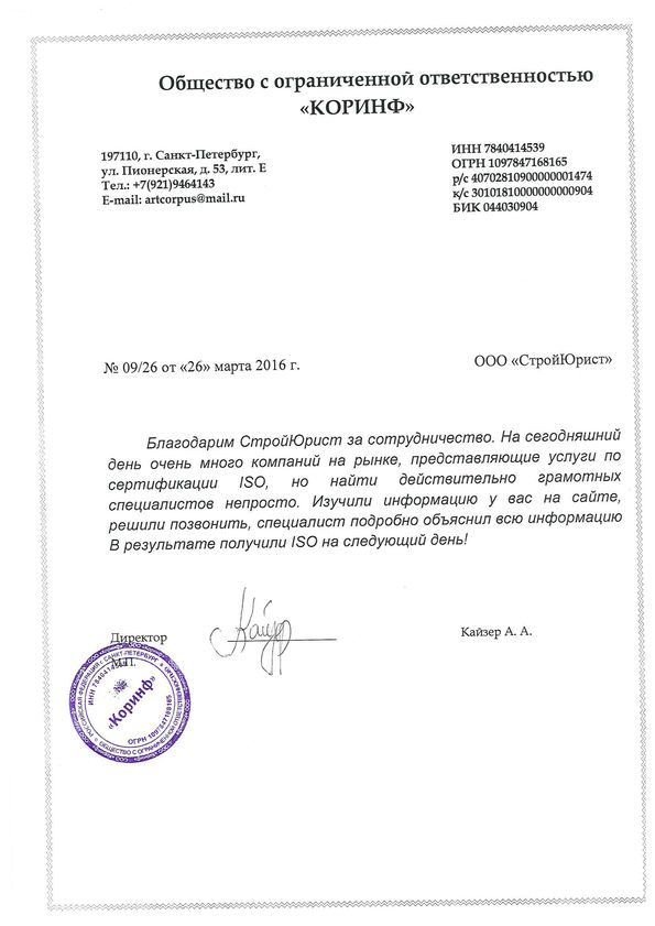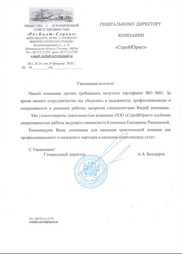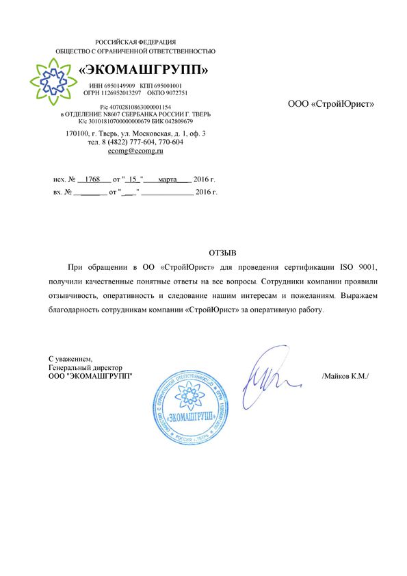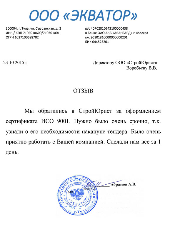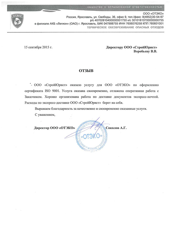 Отзывы клиентов "СтройЮрист" по ISO в Рыбинске