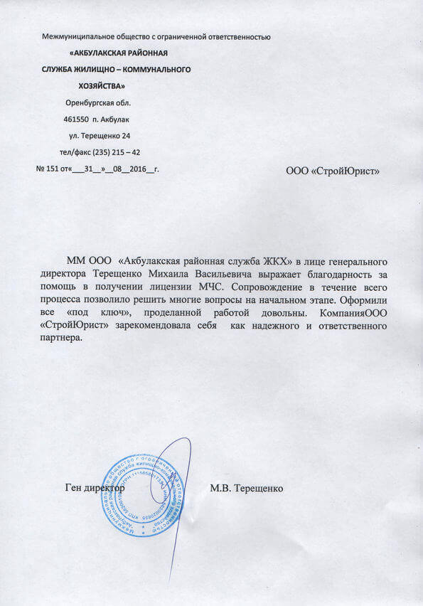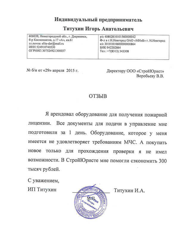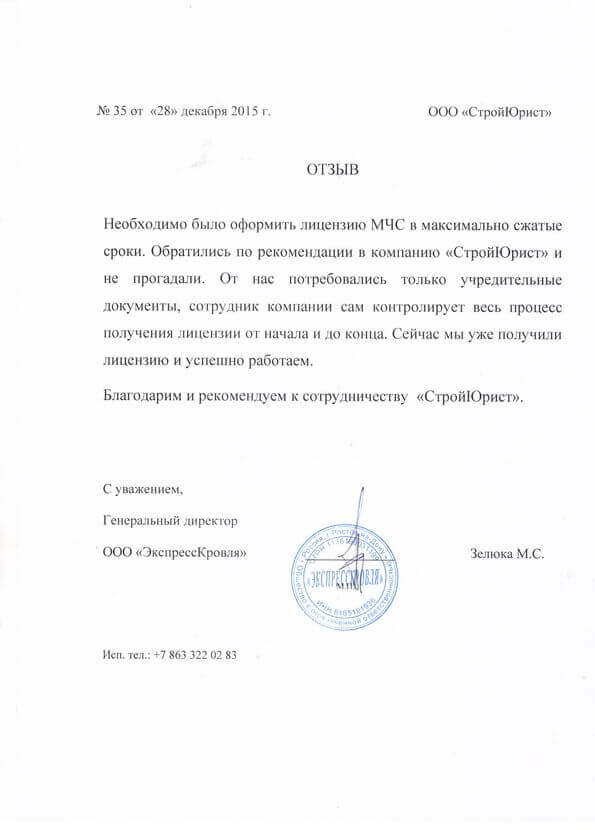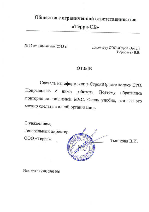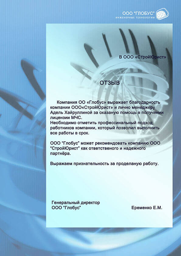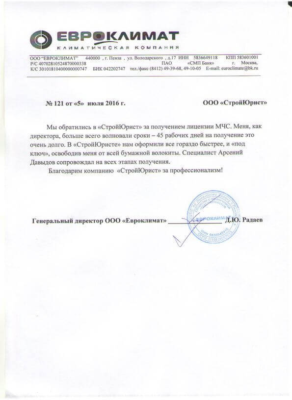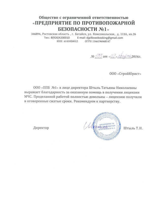 Отзывы клиентов "СтройЮрист" по лицензированию МЧС в Рыбинске