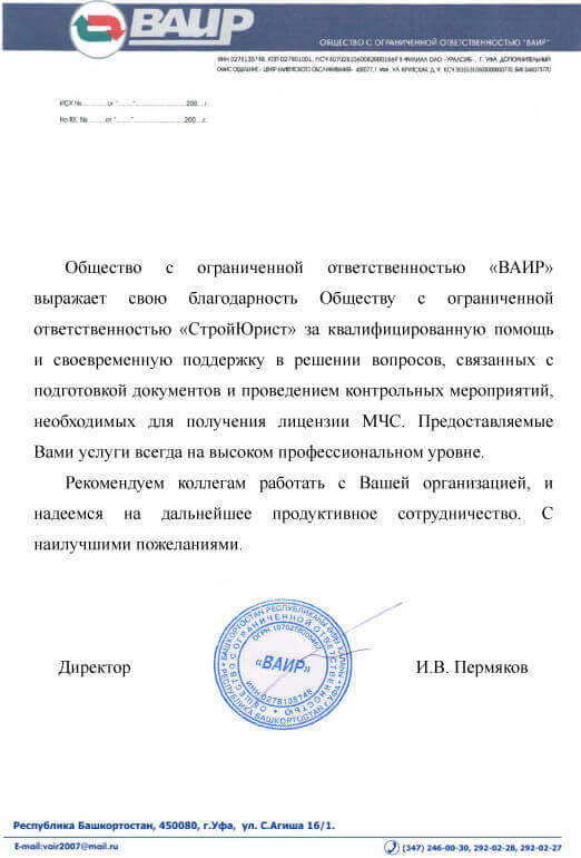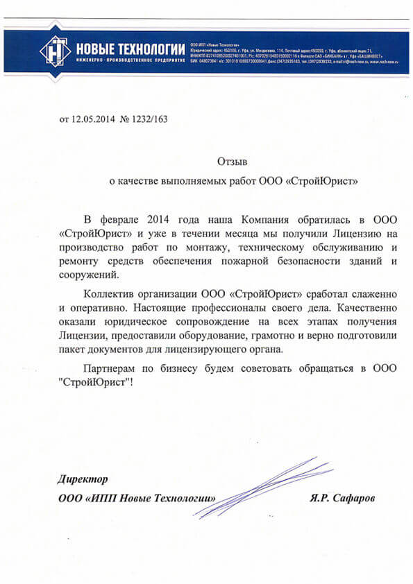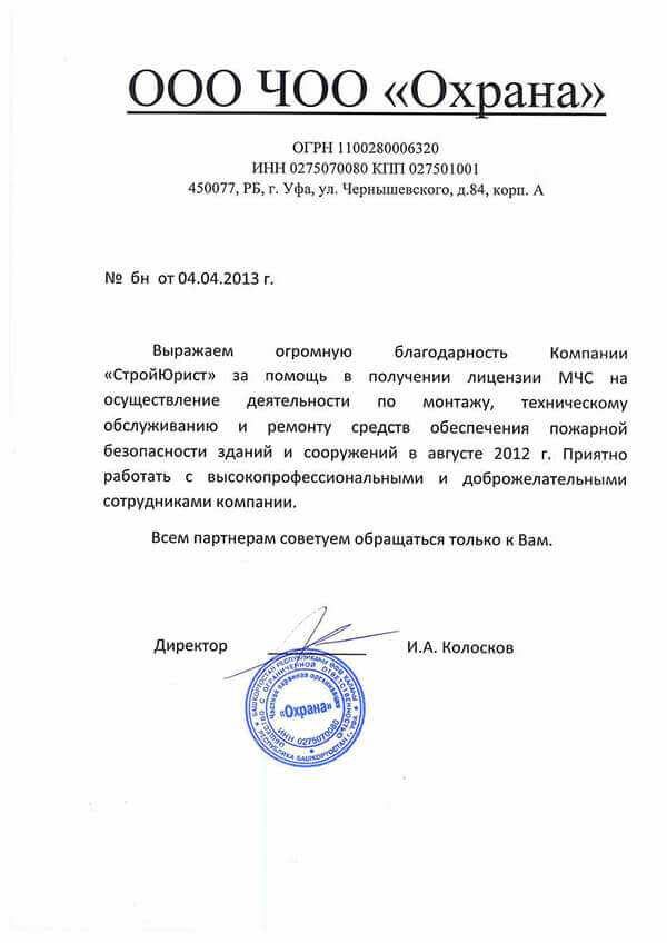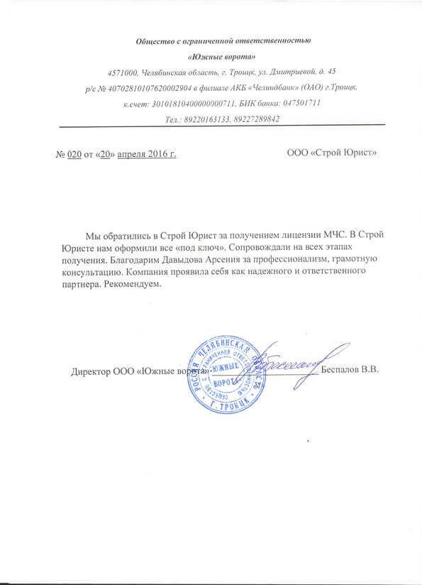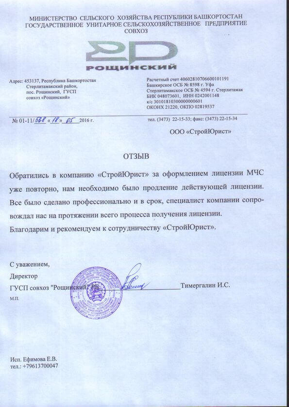 Отзывы клиентов "СтройЮрист" по лицензированию МЧС в Рыбинске