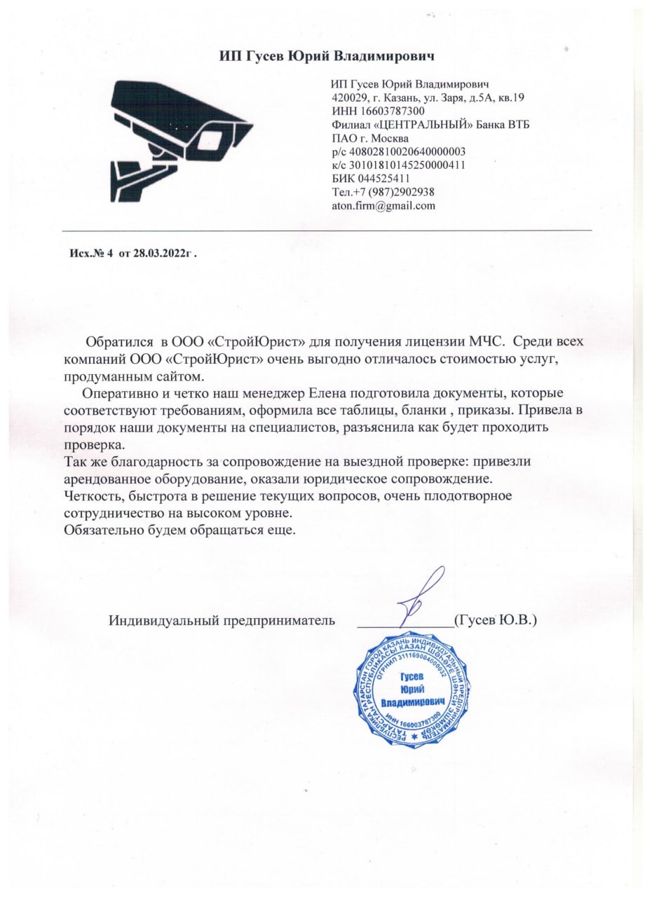 Отзывы клиентов "СтройЮрист" по лицензированию МЧС в Рыбинске