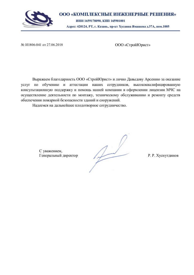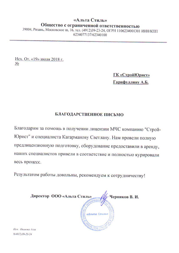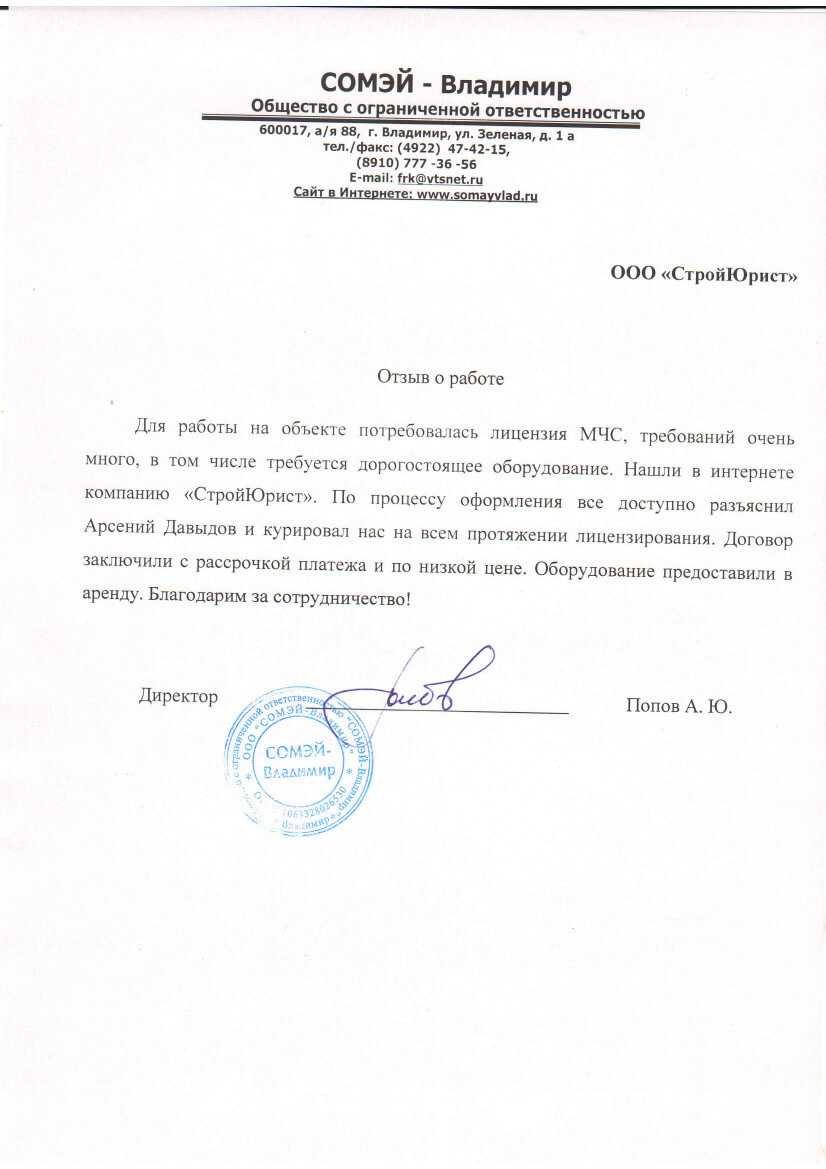 Отзывы клиентов "СтройЮрист" по лицензированию МЧС в Рыбинске