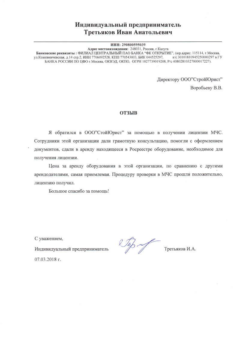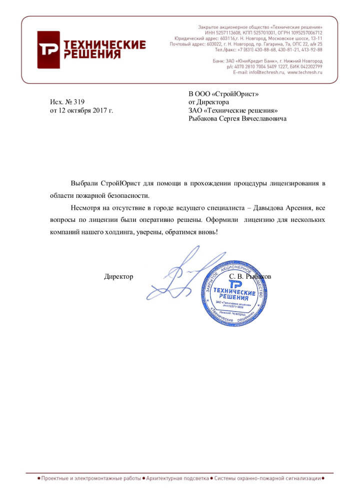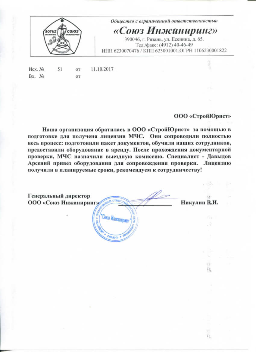 Отзывы клиентов "СтройЮрист" по лицензированию МЧС в Рыбинске