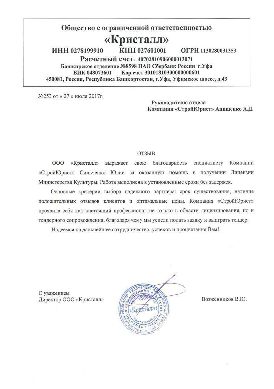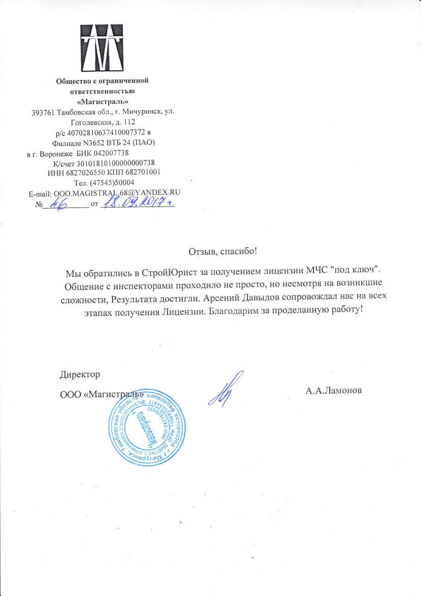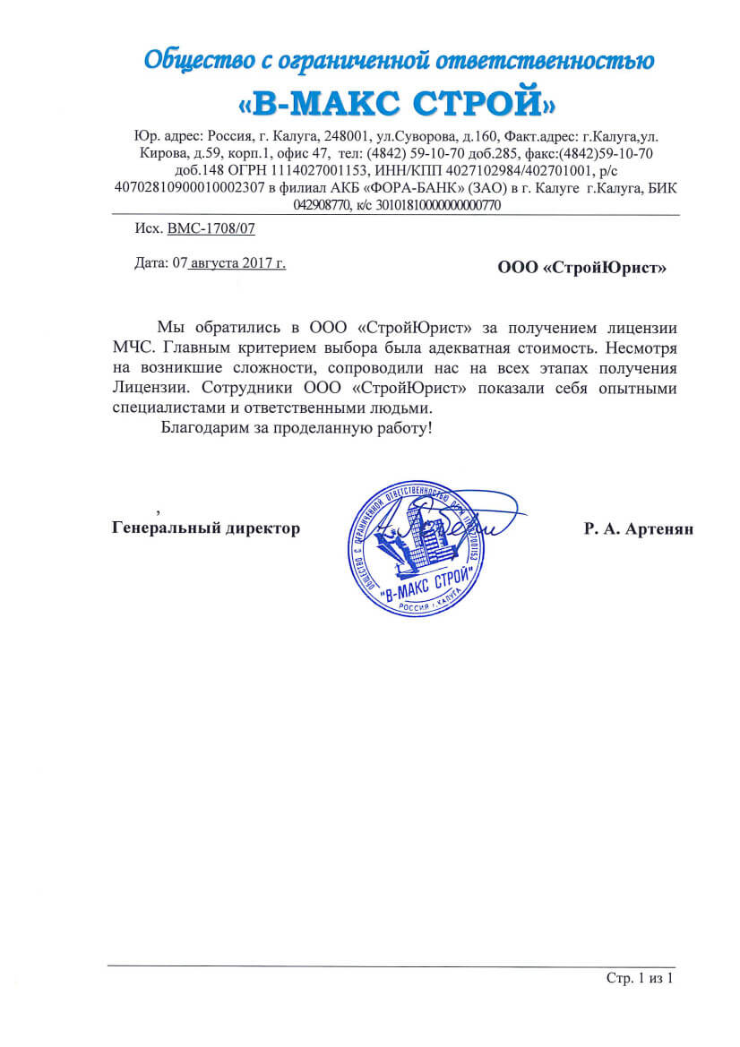 Отзывы клиентов "СтройЮрист" по лицензированию МЧС в Рыбинске