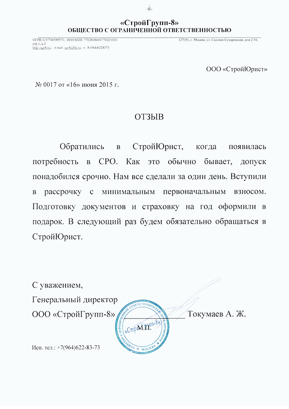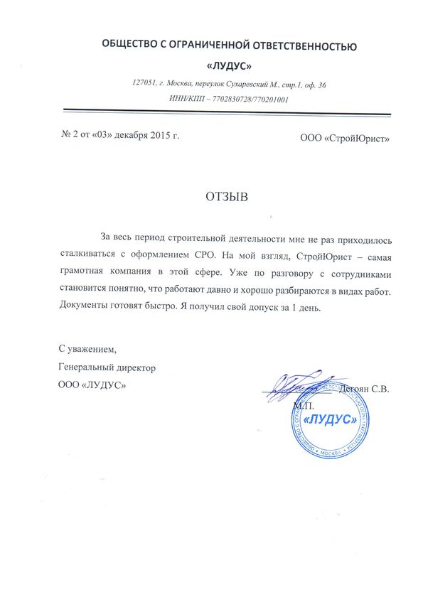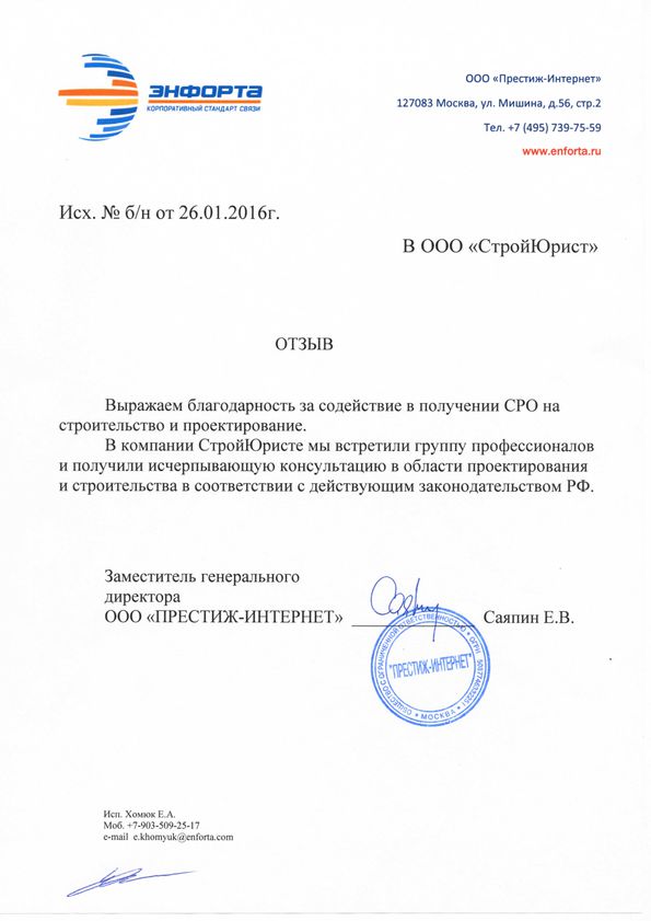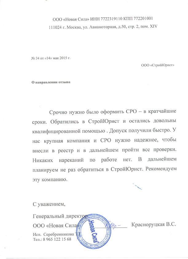Отзывы клиентов "СтройЮрист" по вступлению в СРО в Рыбинске