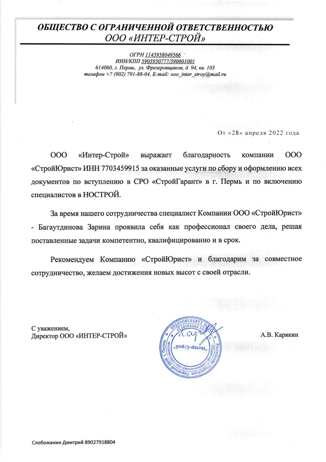 Отзывы клиентов "СтройЮрист" по вступлению в СРО в Рыбинске