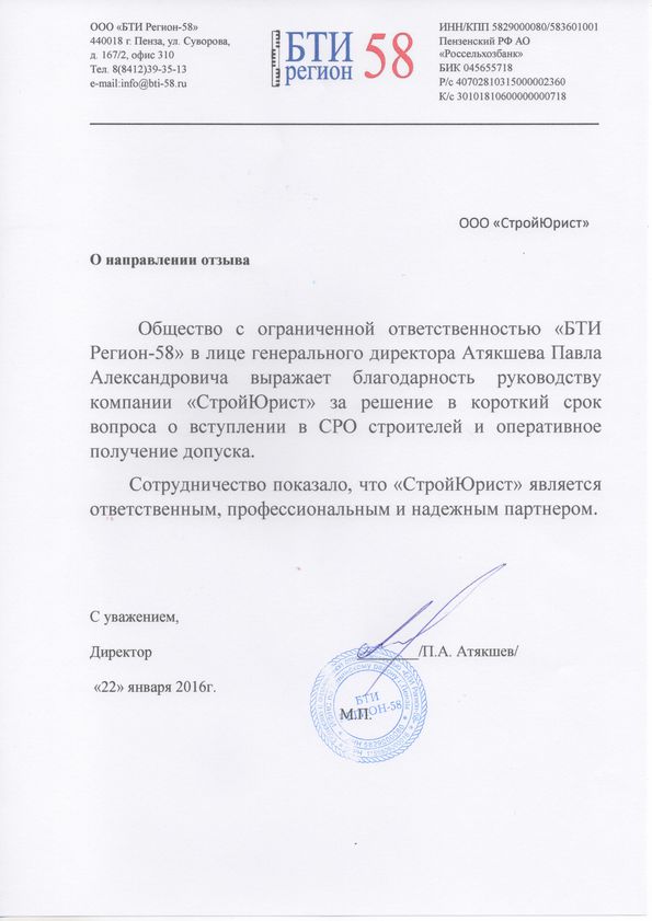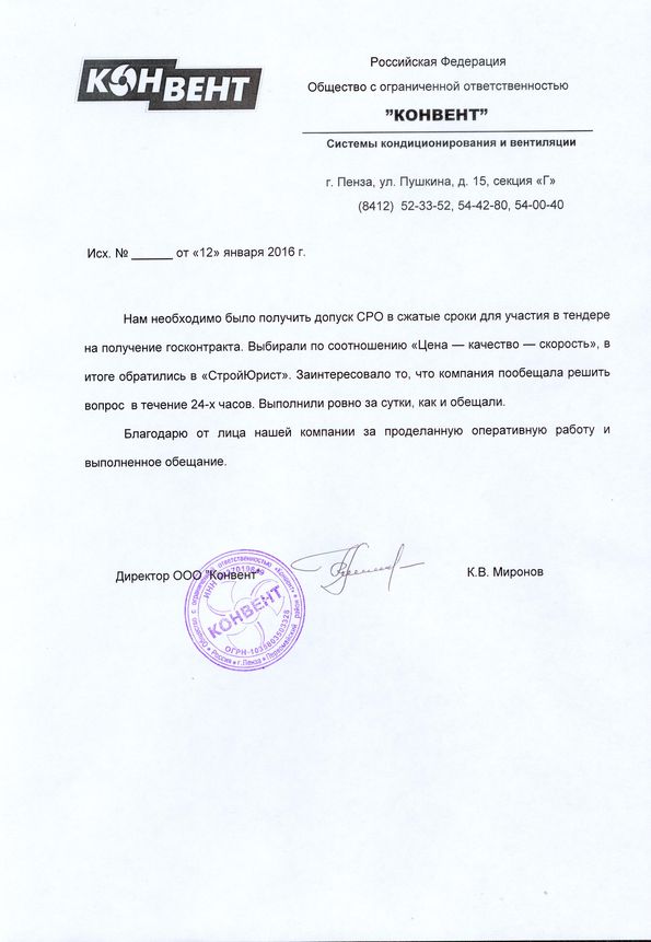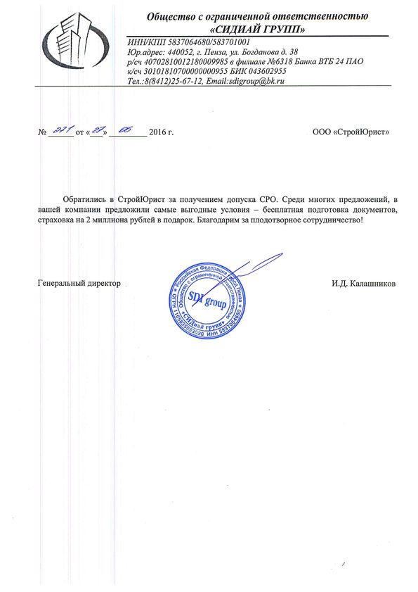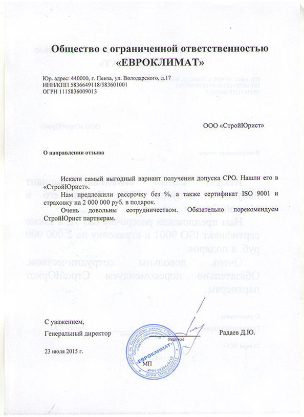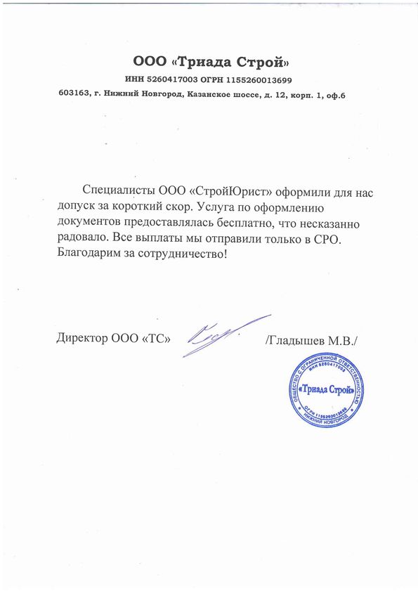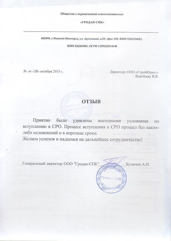 Отзывы клиентов "СтройЮрист" по вступлению в СРО в Рыбинске