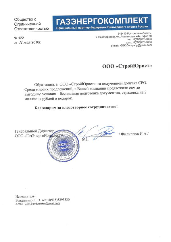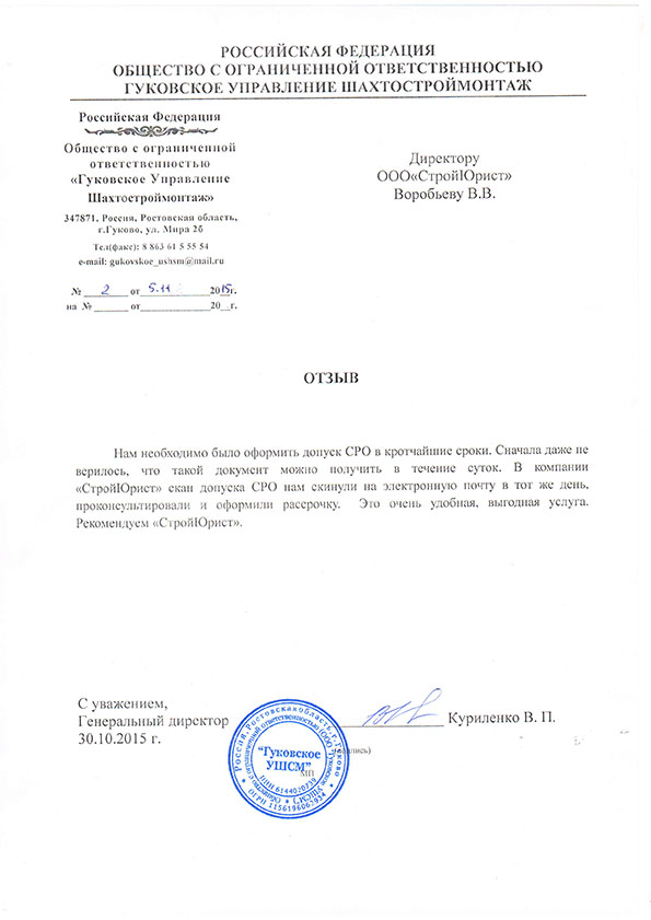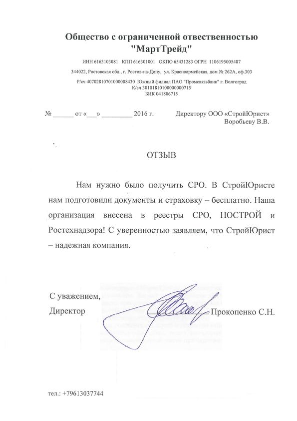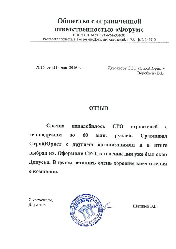 Отзывы клиентов "СтройЮрист" по вступлению в СРО в Рыбинске