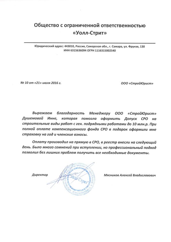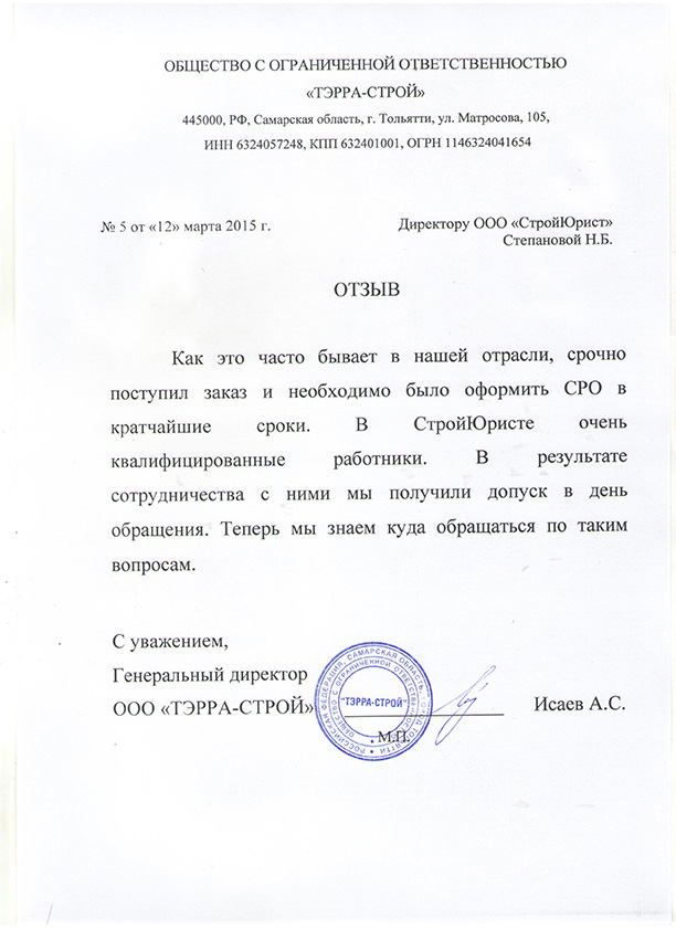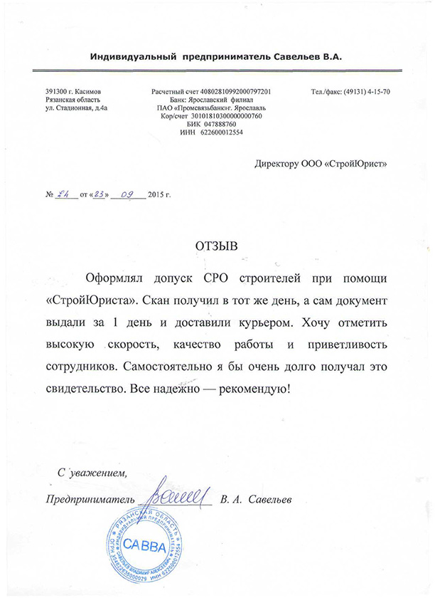 Отзывы клиентов "СтройЮрист" по вступлению в СРО в Рыбинске