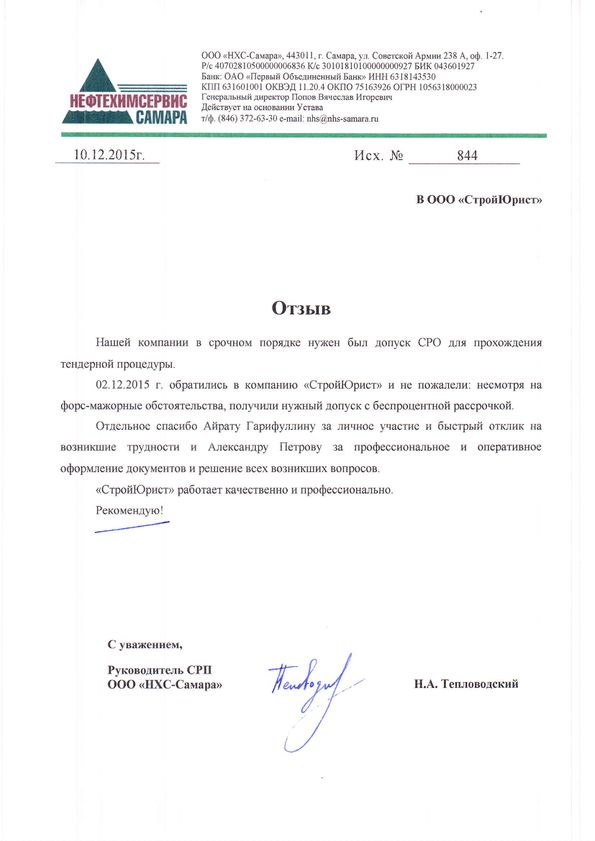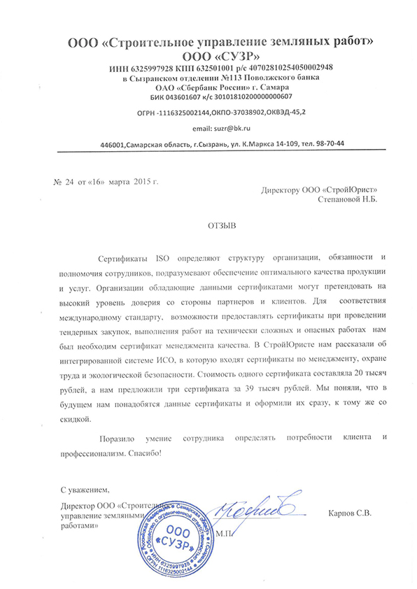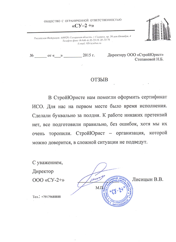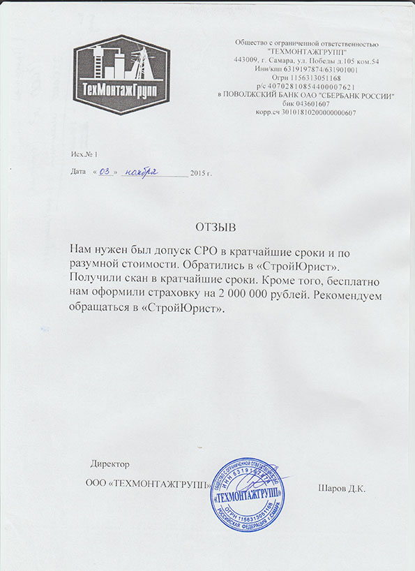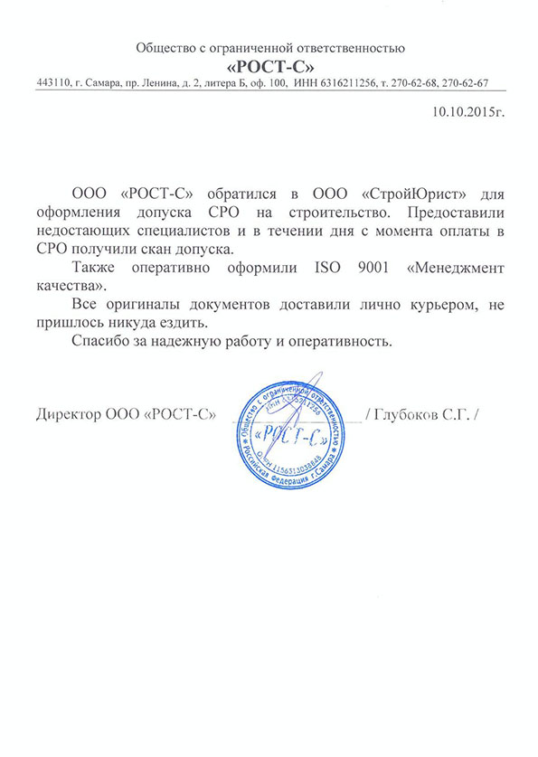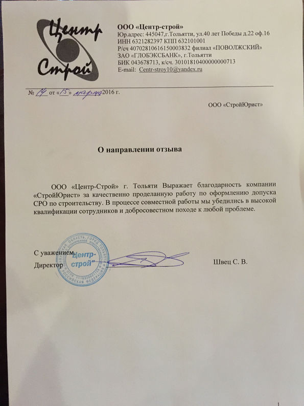 Отзывы клиентов "СтройЮрист" по вступлению в СРО в Рыбинске