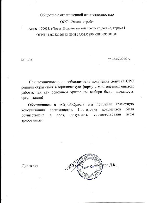 Отзывы клиентов "СтройЮрист" по вступлению в СРО в Рыбинске