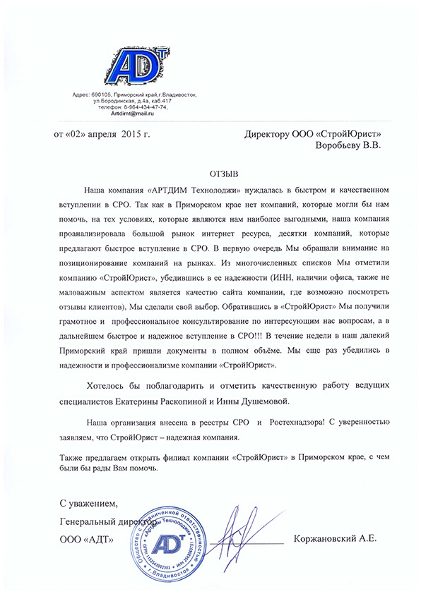Отзывы клиентов "СтройЮрист" по вступлению в СРО в Рыбинске