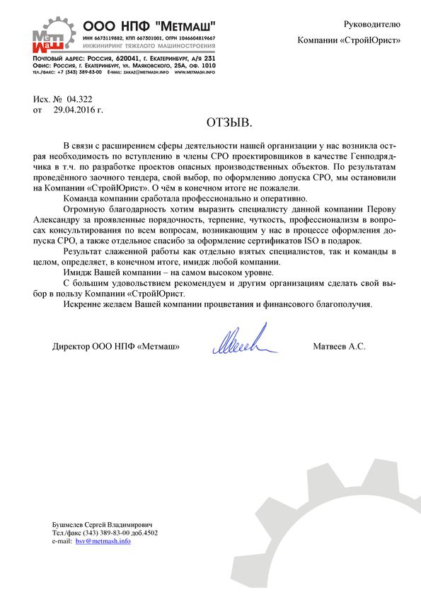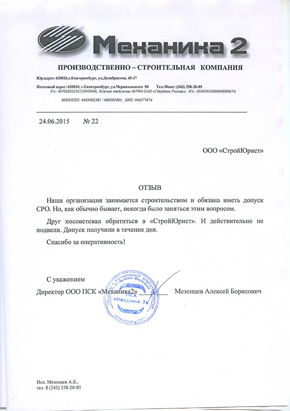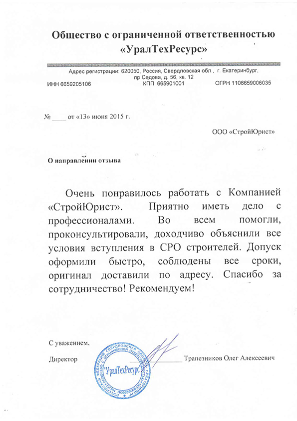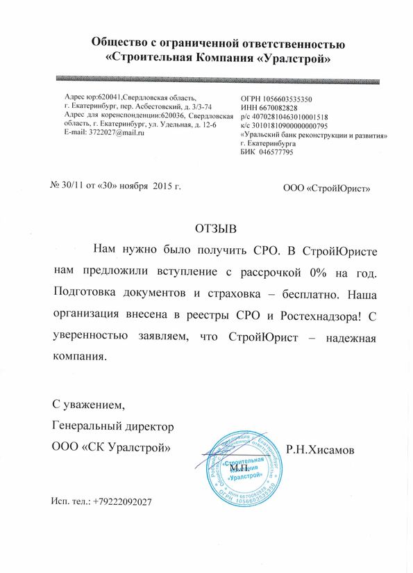 Отзывы клиентов "СтройЮрист" по вступлению в СРО в Рыбинске