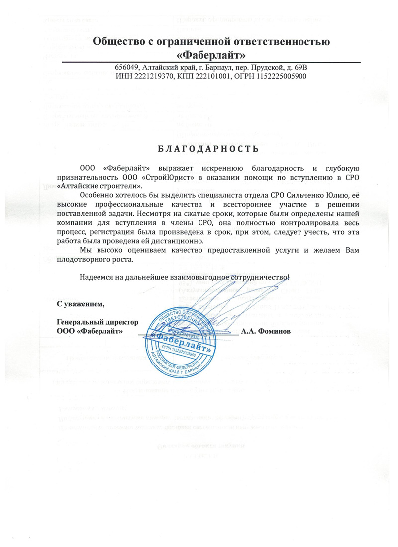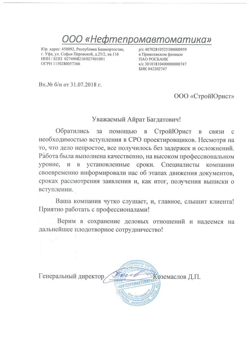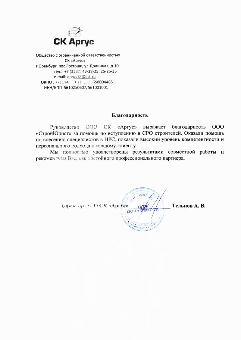 Отзывы клиентов "СтройЮрист" по вступлению в СРО в Рыбинске