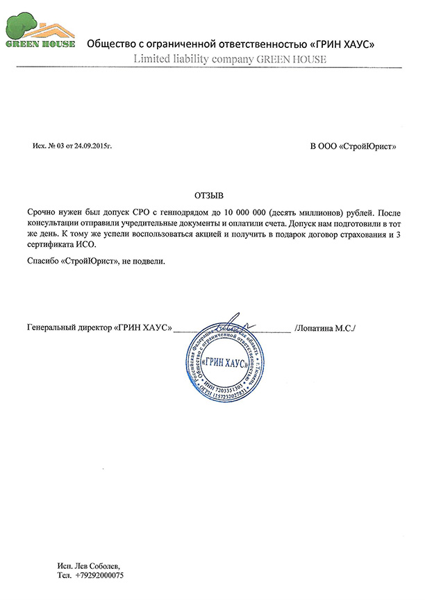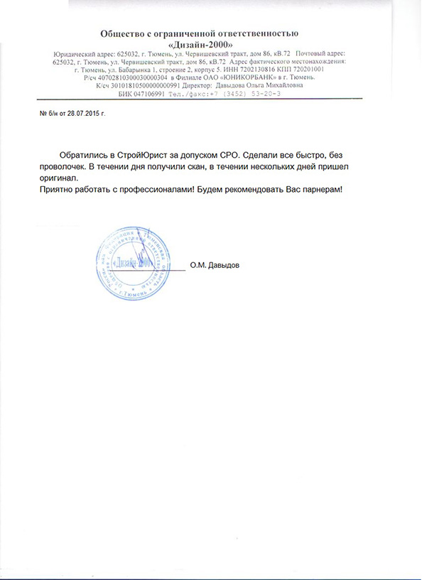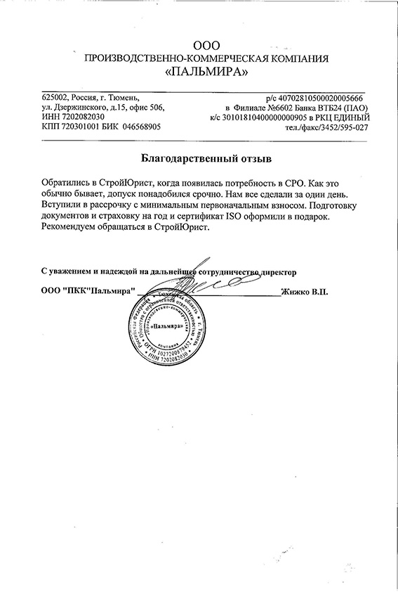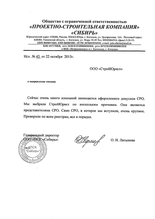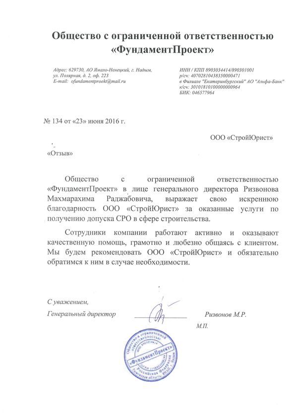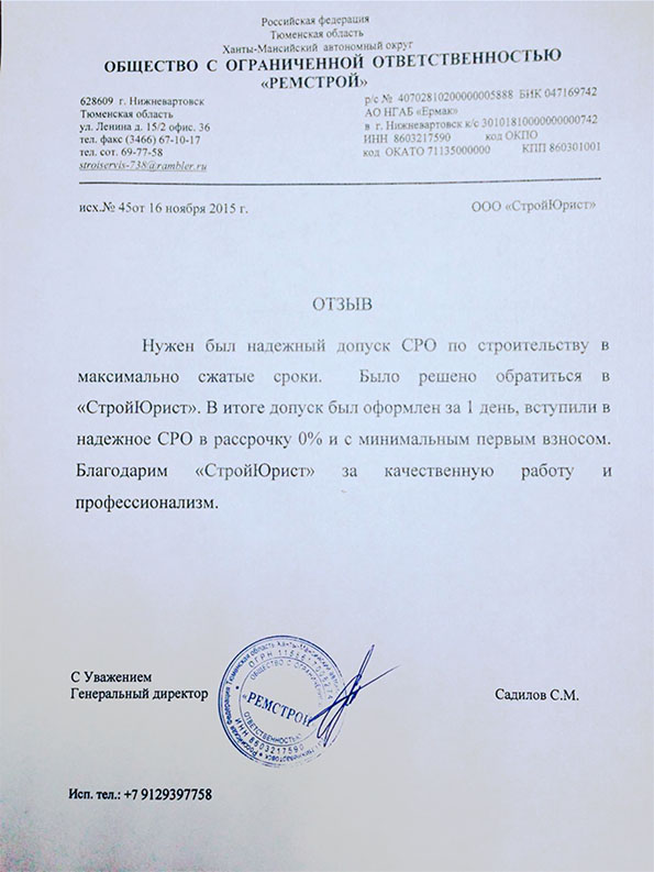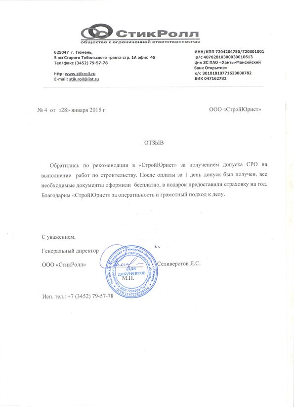 Отзывы клиентов "СтройЮрист" по вступлению в СРО в Рыбинске