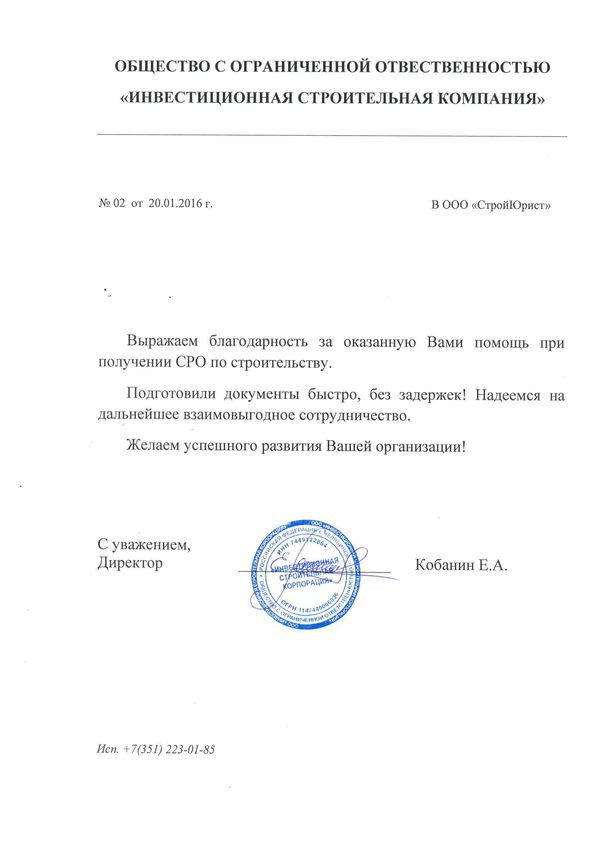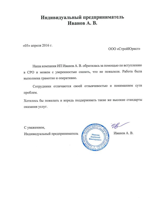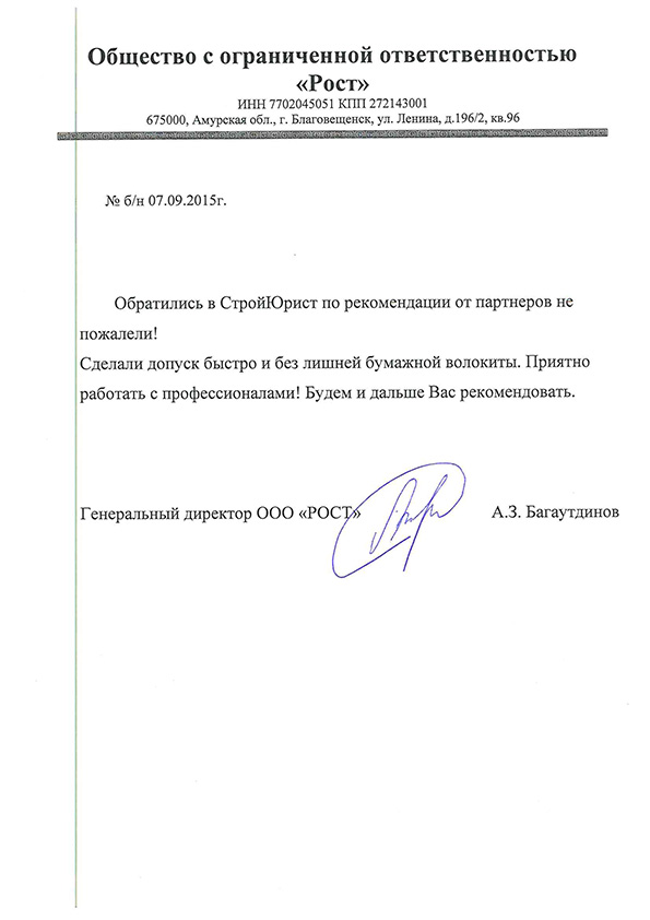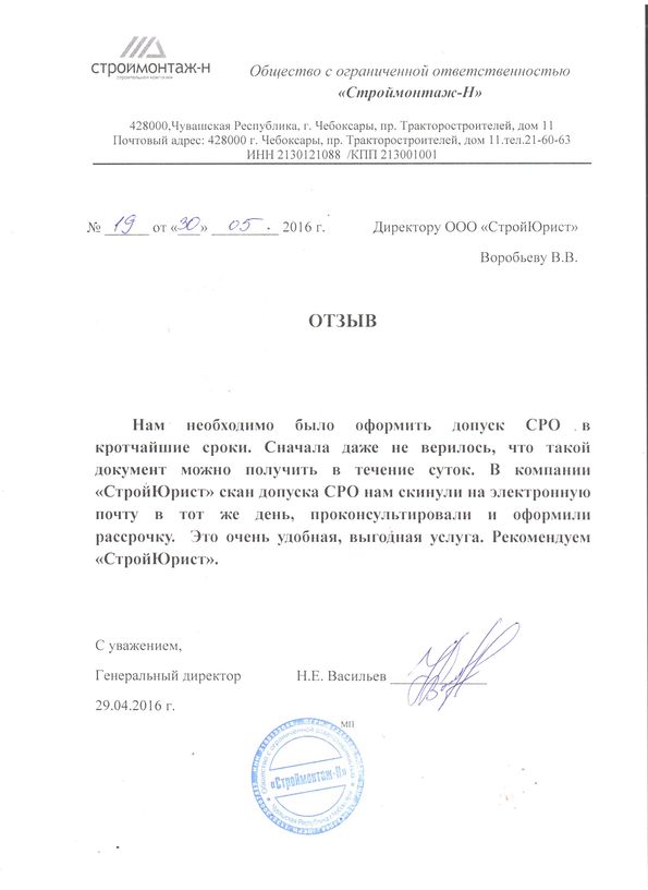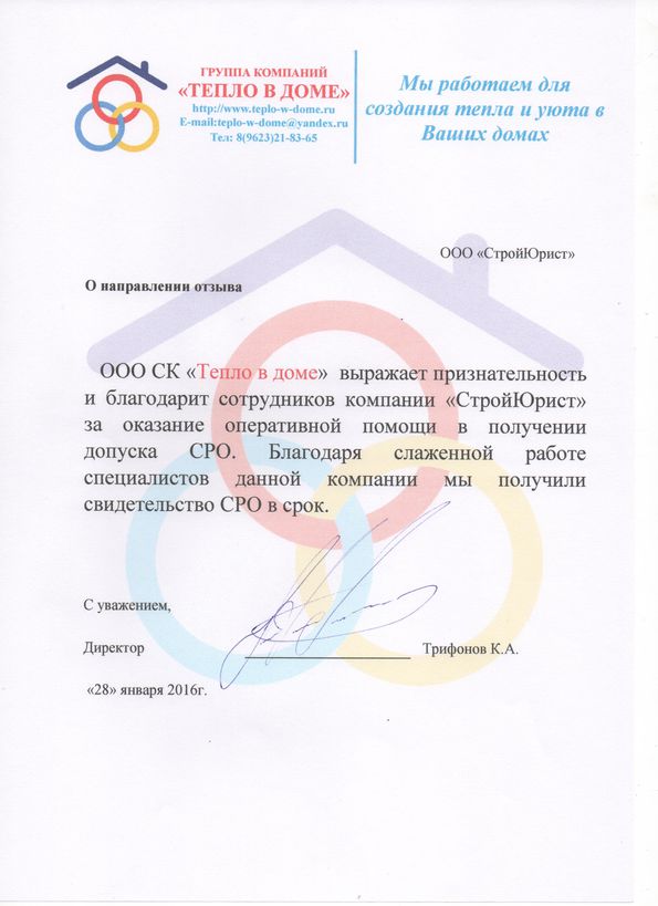 Отзывы клиентов "СтройЮрист" по вступлению в СРО в Рыбинске