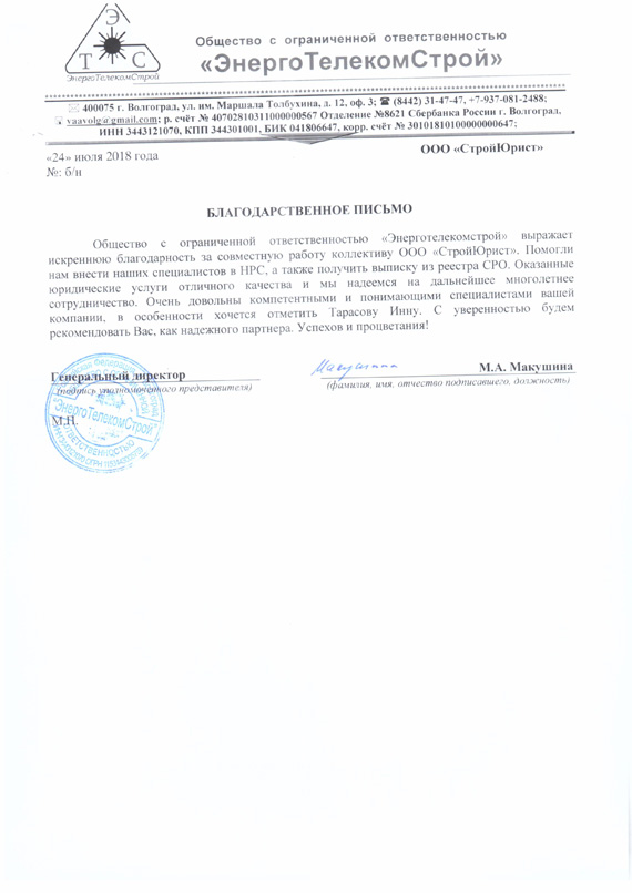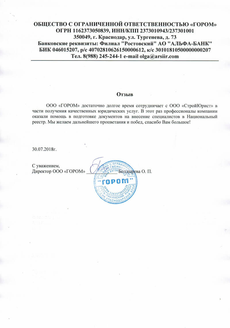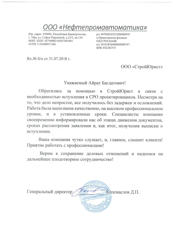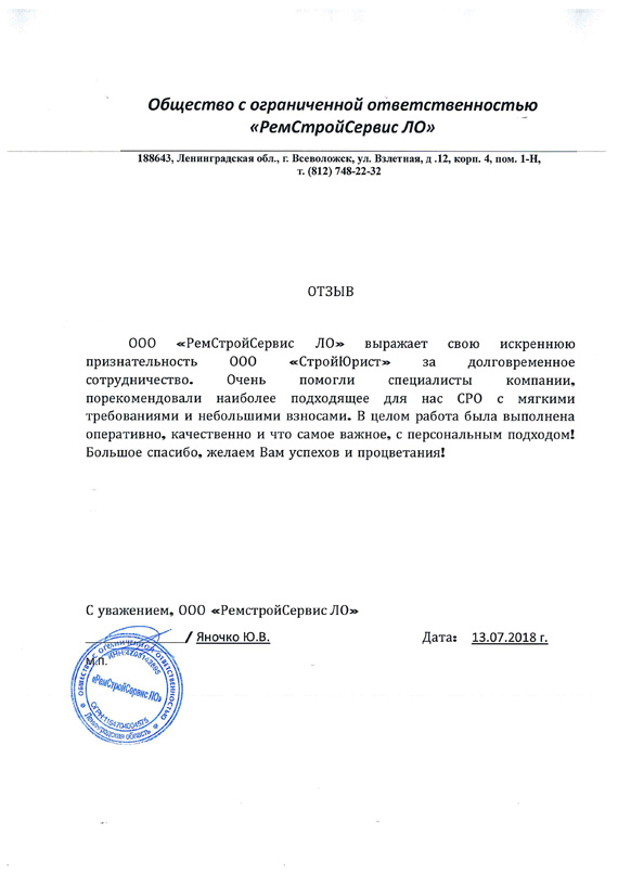 Отзывы клиентов "СтройЮрист" по вступлению в СРО в Рыбинске