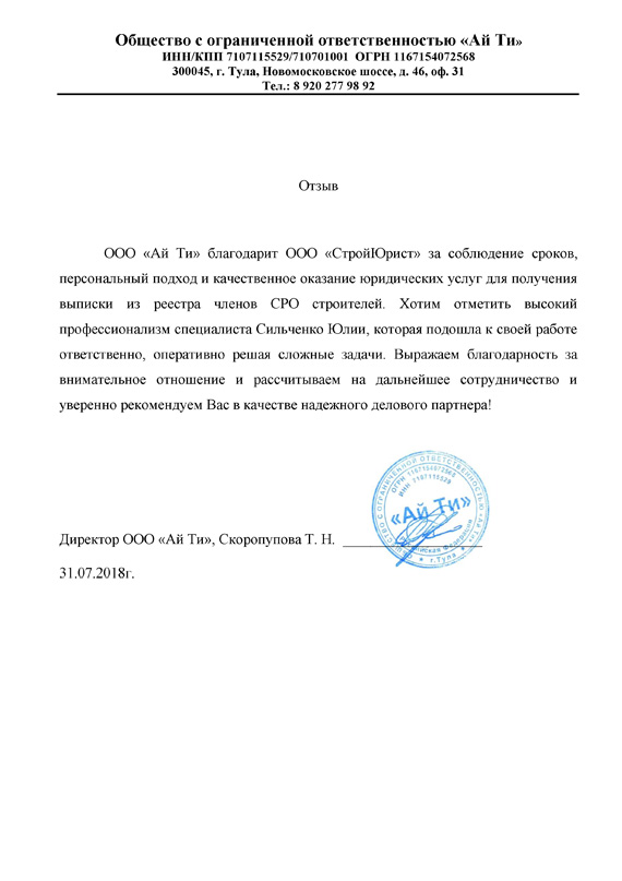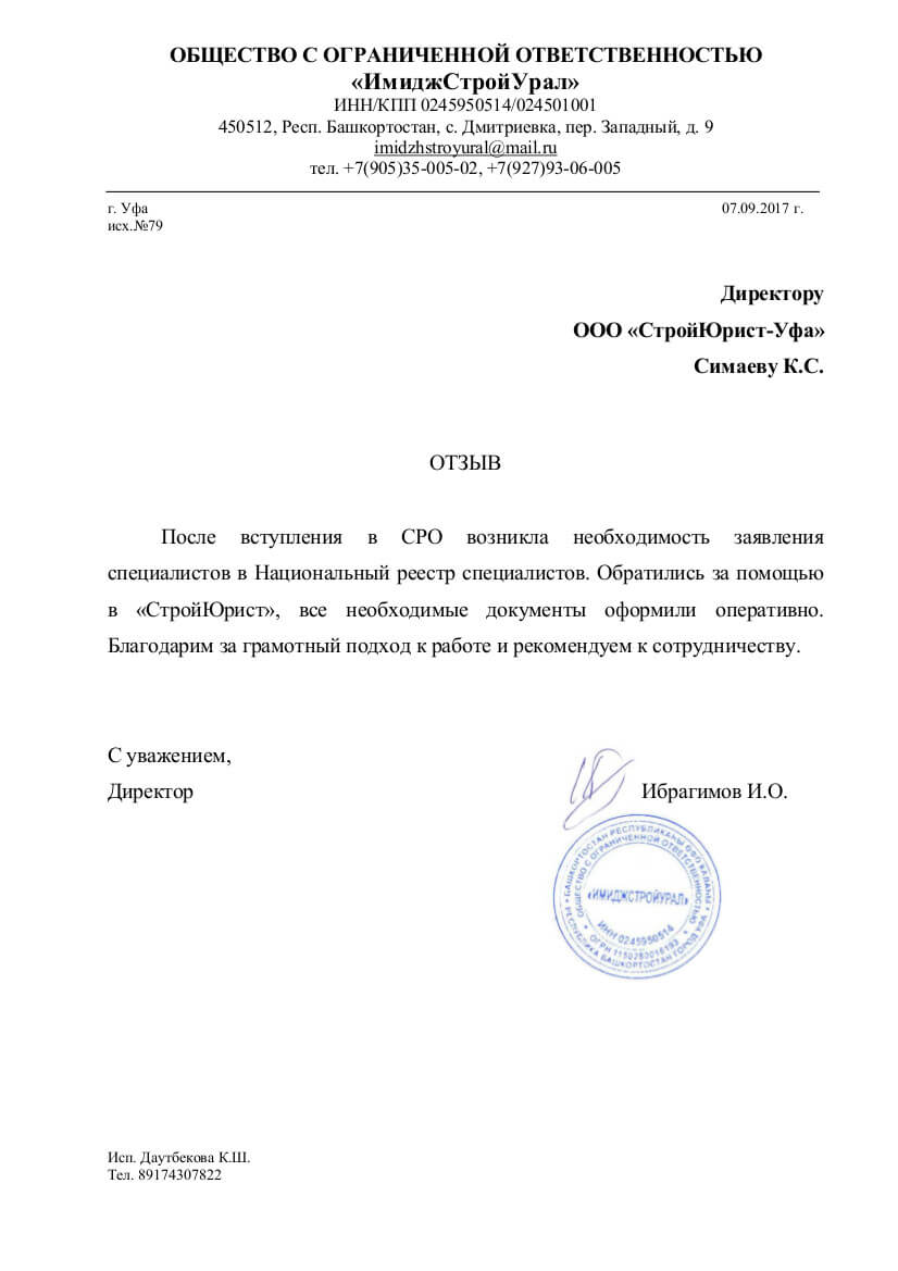 Отзывы клиентов "СтройЮрист" по вступлению в СРО в Рыбинске