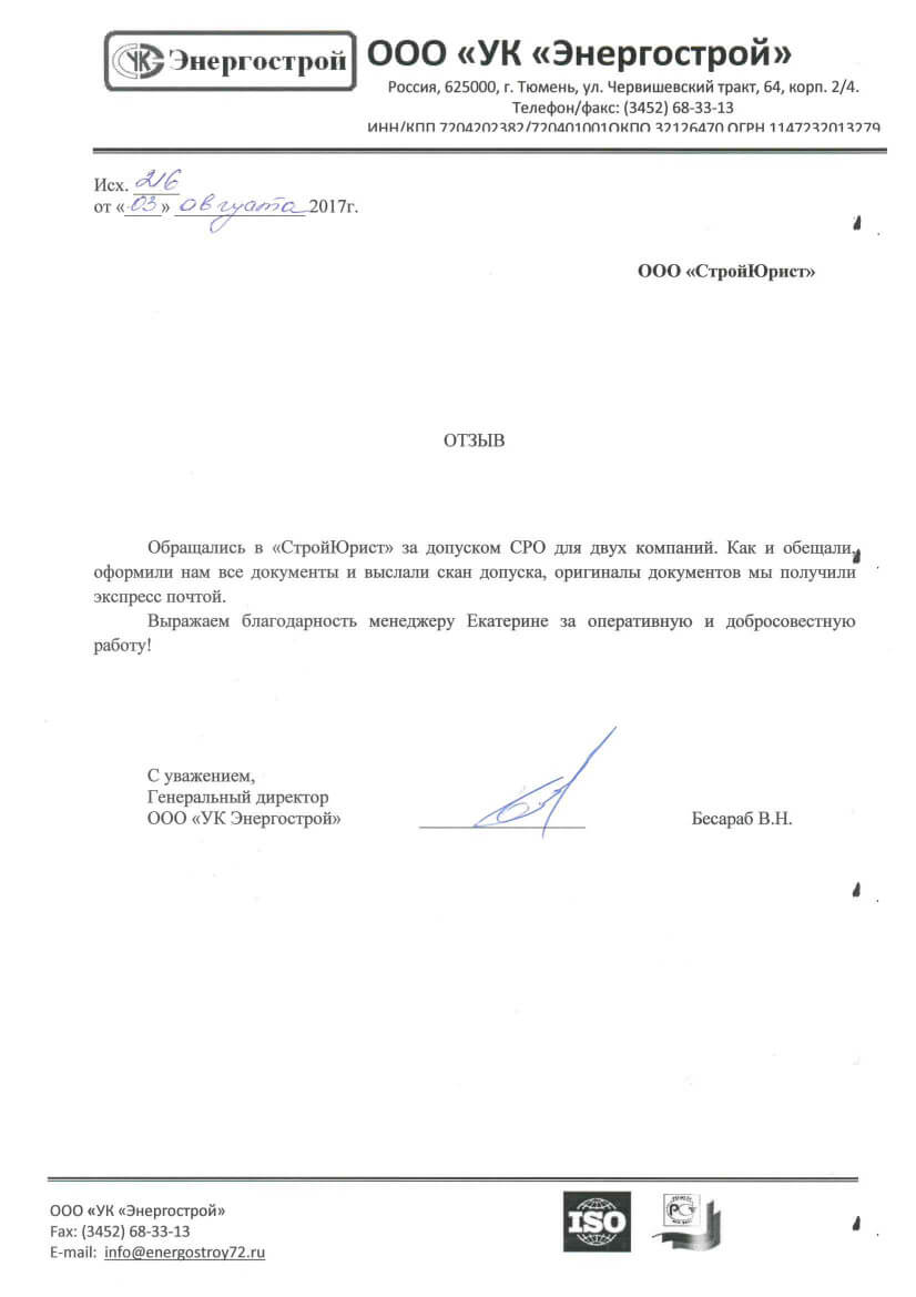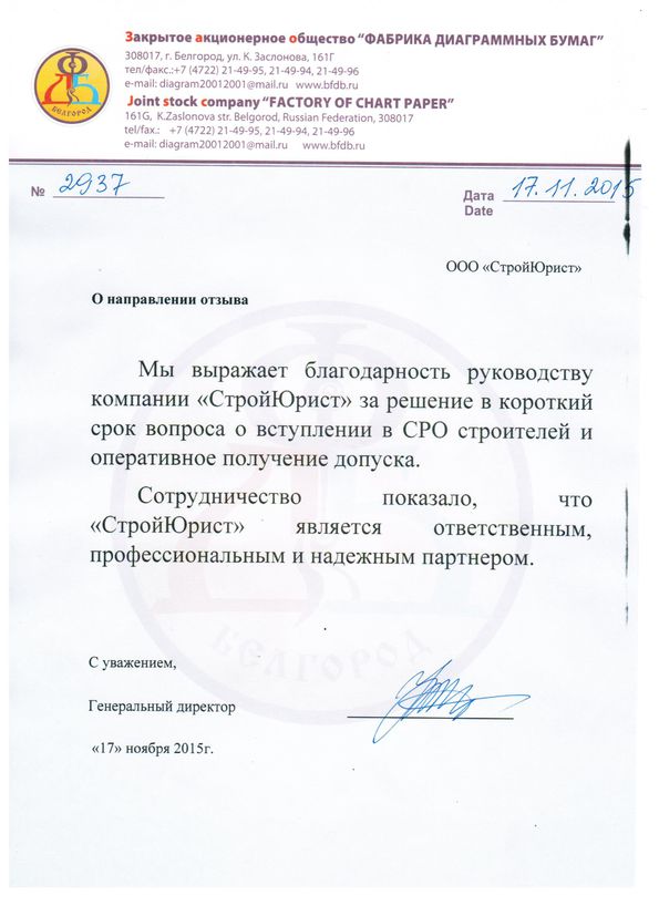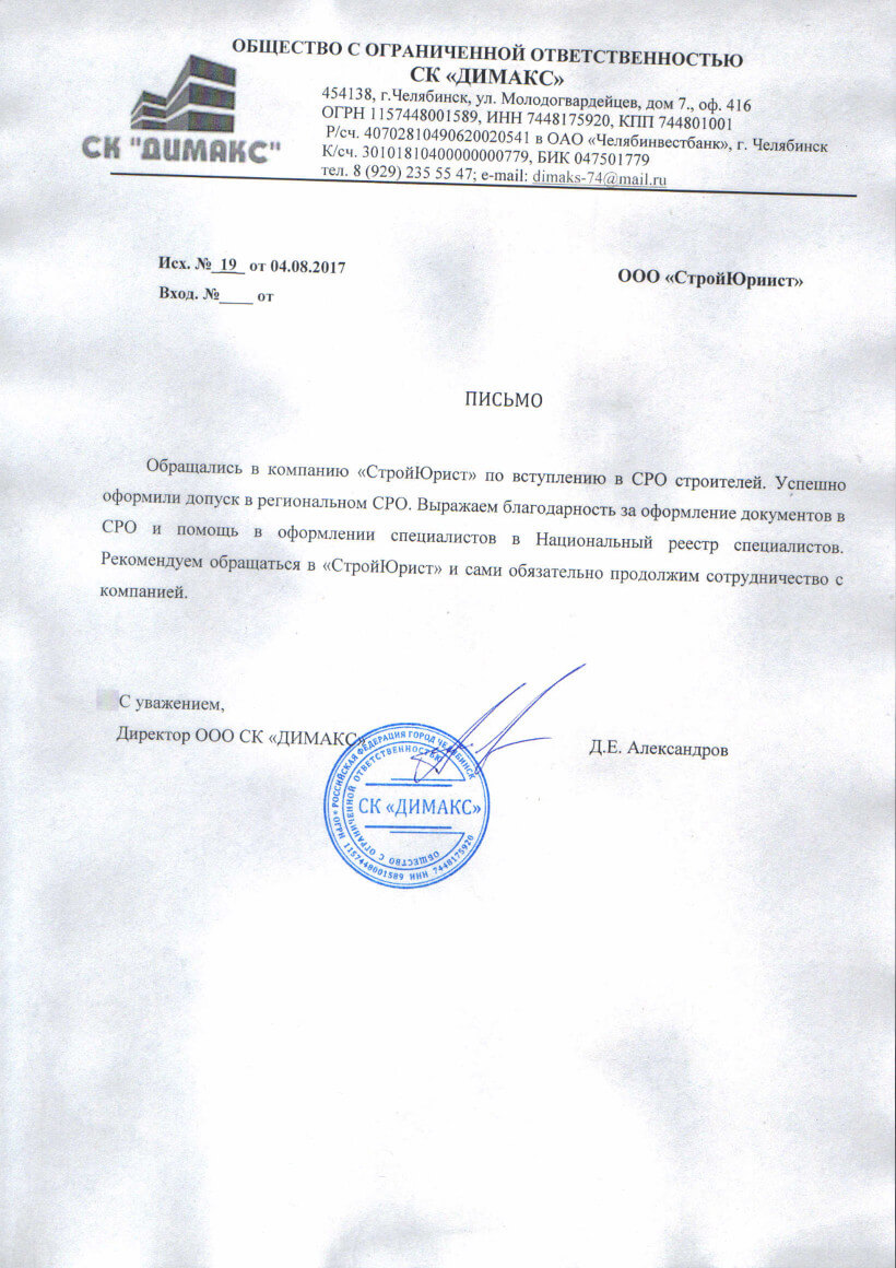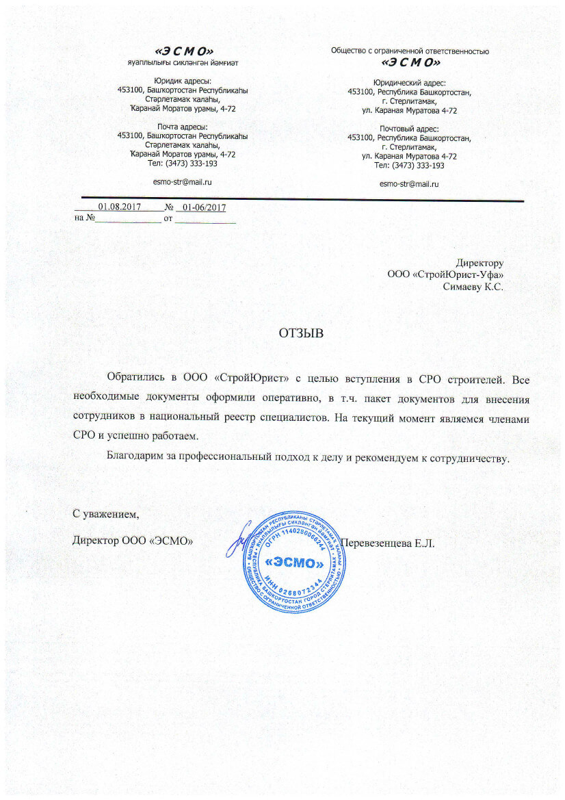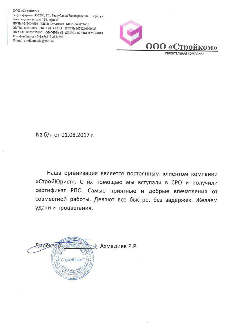Отзывы клиентов "СтройЮрист" по вступлению в СРО в Рыбинске